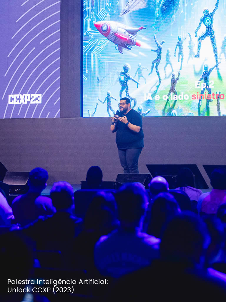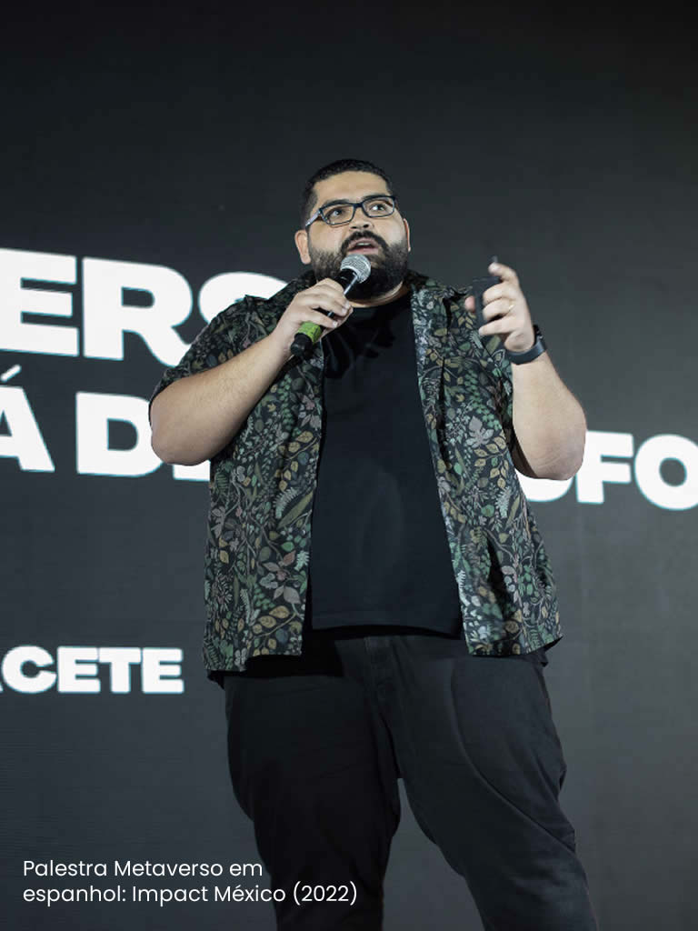 Além de TEDXSpeaker, também é palestrante e mediador de eventos, transitando em temas como Inovação, Tecnologia, Marketing, Negócios e Tendências. Já foi speaker em eventos internacionais como WebSummit e Collision, além de cobrir, anualmente, festivais como o SXSW.